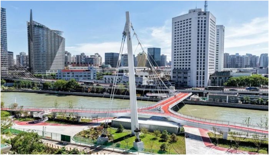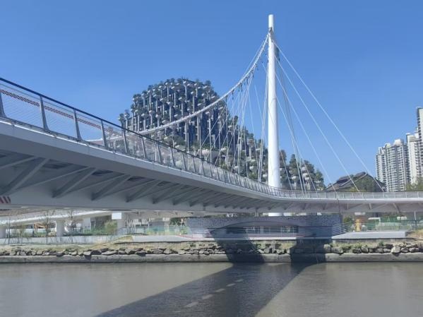 同样,由普陀、静安两区共同实施的跨苏州河的百合桥,有效解决了长寿路桥与昌化路桥之间间距较大,两区居民“近在咫尺却要绕道而行”的困难。作为苏州河上最年轻的桥梁,百合桥的设计注重与滨水空间联动,它不仅为市民搭建起又一便捷、安全、舒适的慢行通道,还打造了一个休闲、娱乐、舒适、生态的滨水公共空间。