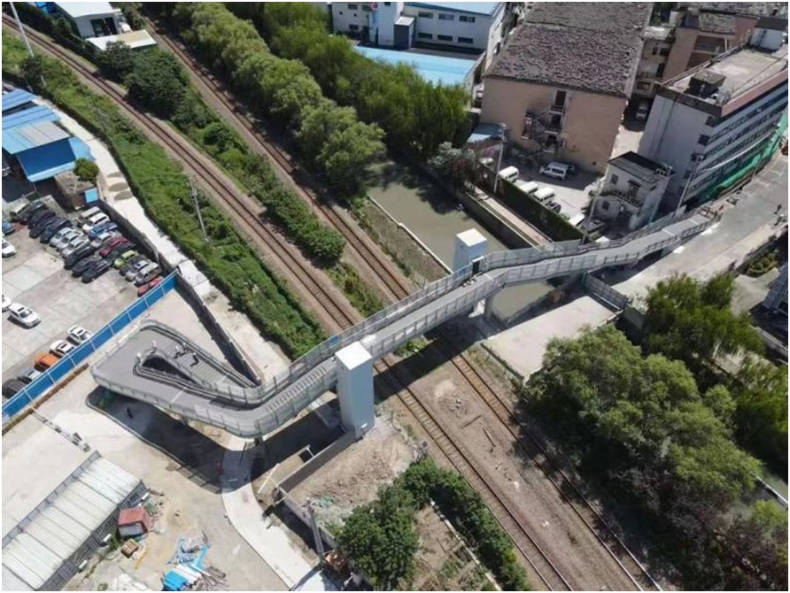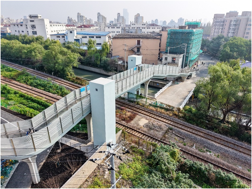 2024年,在虹口区建管委、区人大、区市政水务中心及铁路部门的多方协调配合下,经过3个月紧锣密鼓地施工,三门路跨铁路慢行桥建成通行。如今,这一地区的市民可通过此桥快速便捷地前往铁路西侧区域,有效破解地区出行痛点。市民李阿姨说:“以前到第四人民医院看病,直线距离只有1公里,却要绕行半小时以上,现在15分钟左右就到了。”