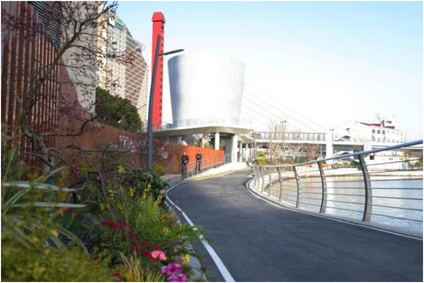 如今,在滨河漫步已无需再从外侧绕行,真正实现了滨水亲水、畅行无阻,这里成了苏州河沿线又一道亮丽的风景线。