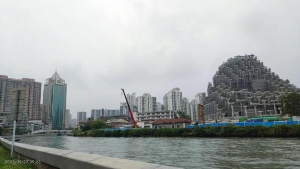 2023年12月,彭越浦滨河景观提升工程正式开工。该工程位于普陀区苏州河岸线“半马苏河”的北岸起点,全长约400米。因距离居民区、养老院、防汛墙、泵闸等较近,为了早日完工,工程建设者们克服了施工场地受限、施工难度大等困难,施工过程中多方协调、采取多种有效措施,尽可能降低扬尘、噪音等给居民带来的困扰,满足各方需求。