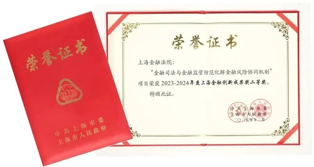“上海金融创新奖”是国内首个聚焦金融创新领域的省部级政府奖项,堪称上海金融界含金量最高的荣誉之一。本届上海金融创新奖由上海市委、市政府组织评选表彰,旨在奖励为推动金融创新,服务上海国际金融中心建设和实体经济发展作出积极贡献的金融创新成果。作为唯一获评的政法机关,此次获奖,是上海金融法院继“大宗股票司法协助执行机制”荣获“2019年度金融创新成果三等奖”、“证券纠纷示范判决机制”荣获“2020年度金融创新成果二等奖”、“金融市场案例测试机制”荣获“2021-2022年度金融创新成果二等奖”后,连续第四次获得这一殊荣。这一创新成果充分彰显了上海金融法院坚持干事创业、开拓创新,以高质量金融司法支撑上海国际金融中心建设的坚定决心,也体现了市委、市政府以及广大金融市场主体对上海金融法院工作的高度认可与充分肯定。