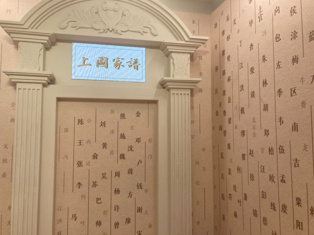 一楼展陈区域以珍贵文献串联馆史与家谱渊源,营造“可阅读的文化空间”。观众可通过“漫游合众”的建筑导览进行沉浸式场馆探索,在“趣说家谱”中聆听AI馆员“小合”生动讲解家谱知识,或在“探姓觅谱”互动区扫描自己的姓氏,获取涵盖家规家训、先祖名人、分布迁徙等内容的数字知识图谱。