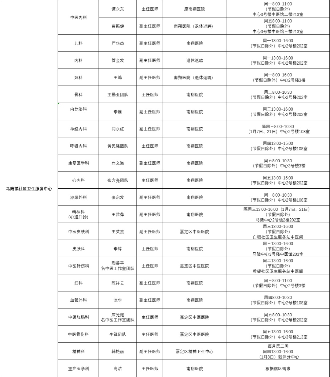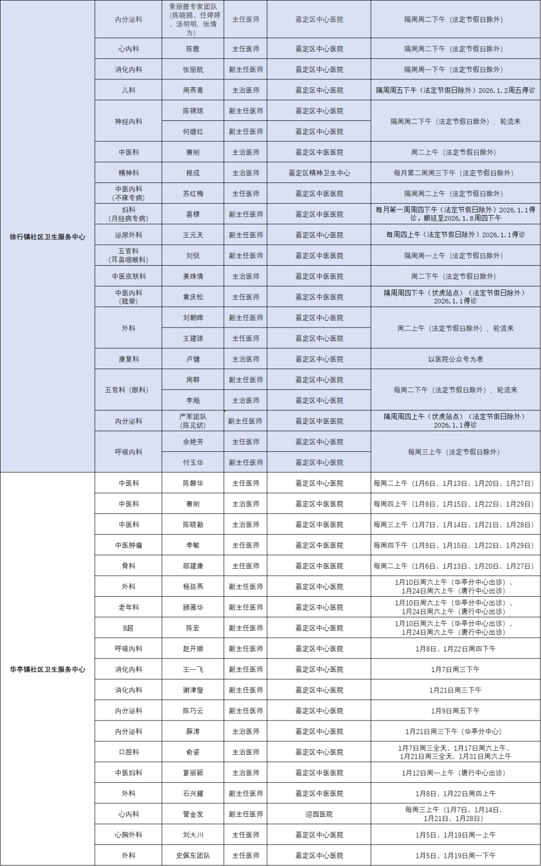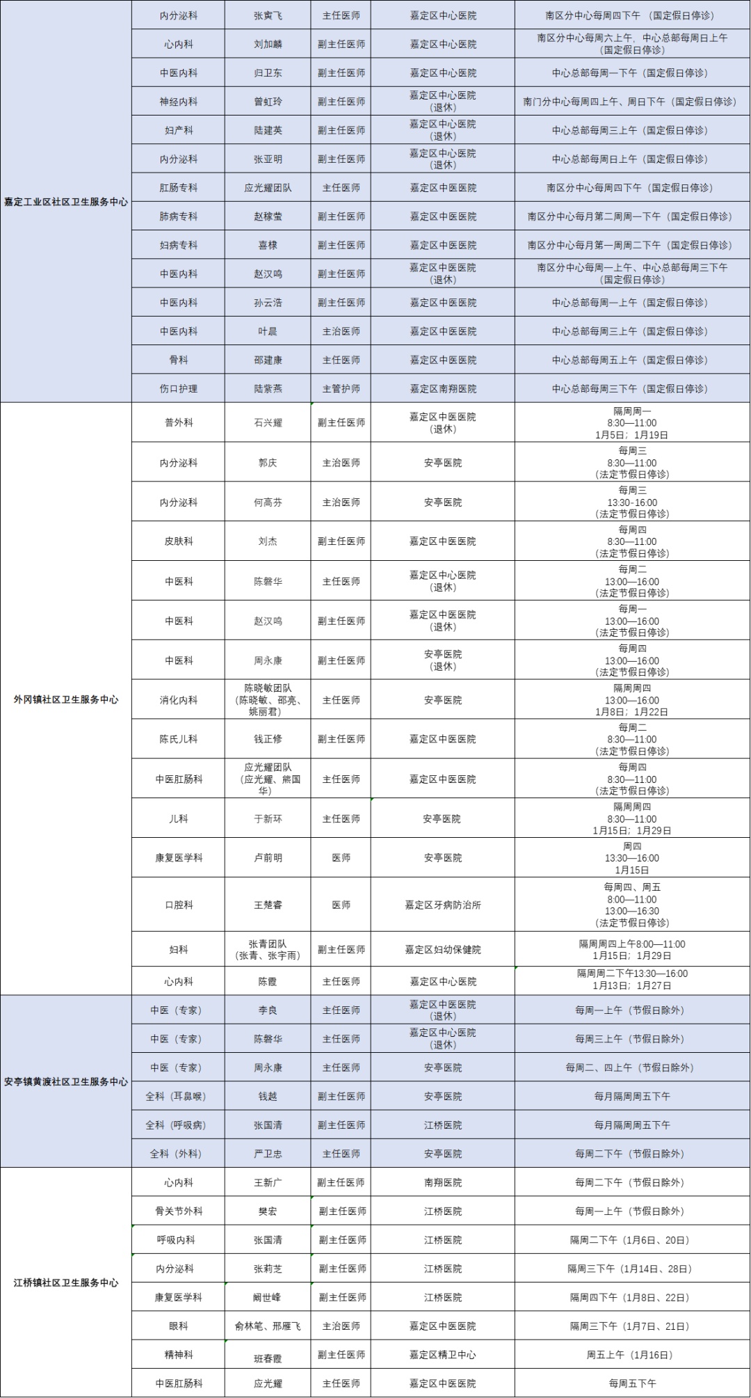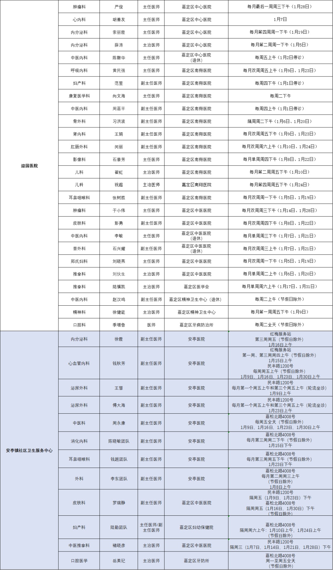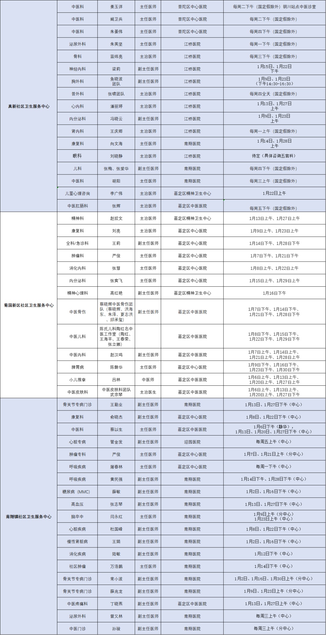 嘉定区各社区医院区级专家1月定期开诊安排出炉