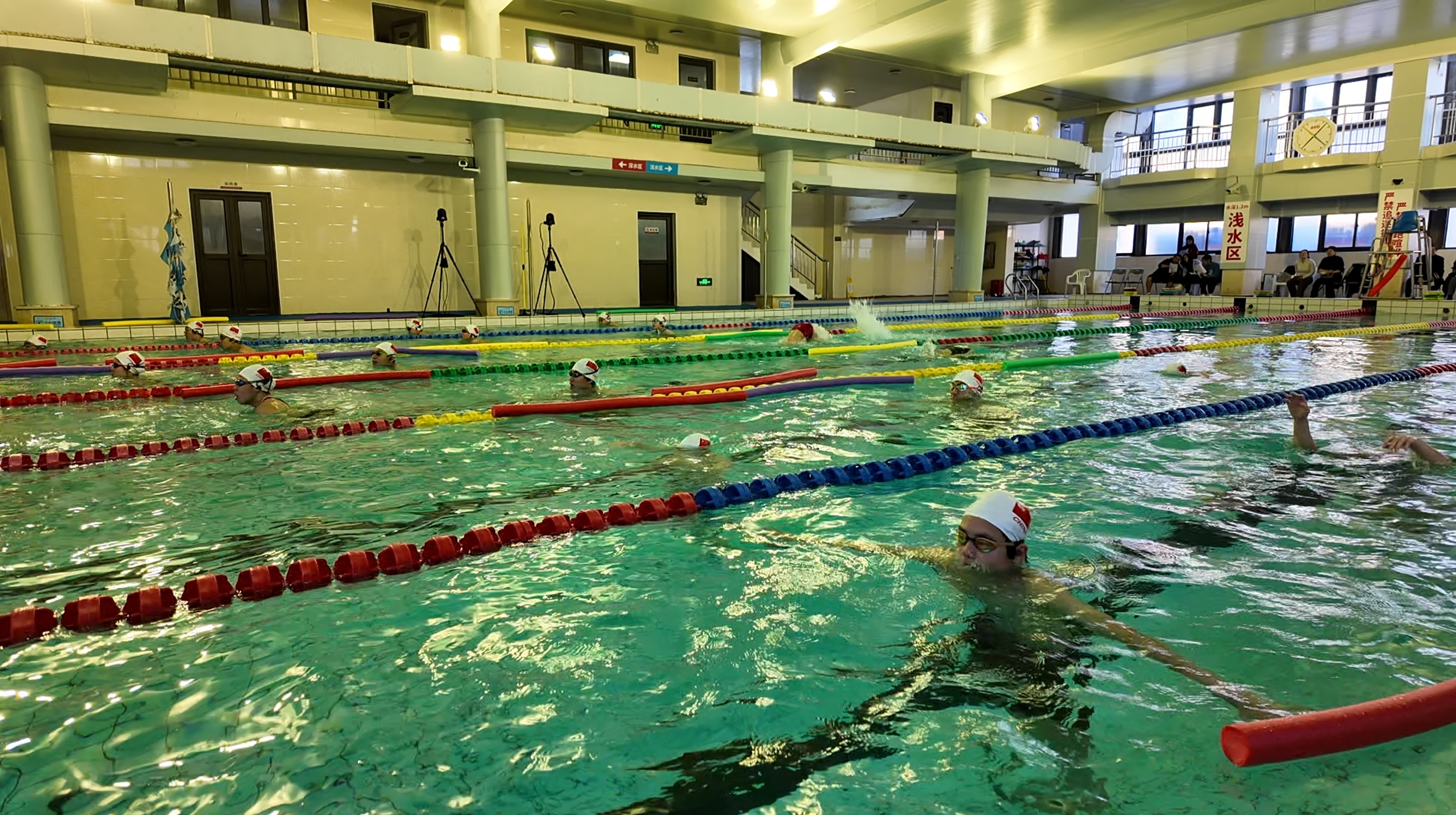 作为“讲台上的名师”展示课,孙亮老师带来的游泳课聚焦自由泳前滚翻转身技术教学,作为国家体育后备人才基地的特色课程,课堂融入心率监测设备、Pad水下拍摄与AI数字化分析技术,构建“学-练-赛-评”一体化智慧训练模式。学生可通过水下影像与AI生成的数据分析报告,自主诊断动作问题,实现从“经验教学”到“数据驱动”的训练转型。