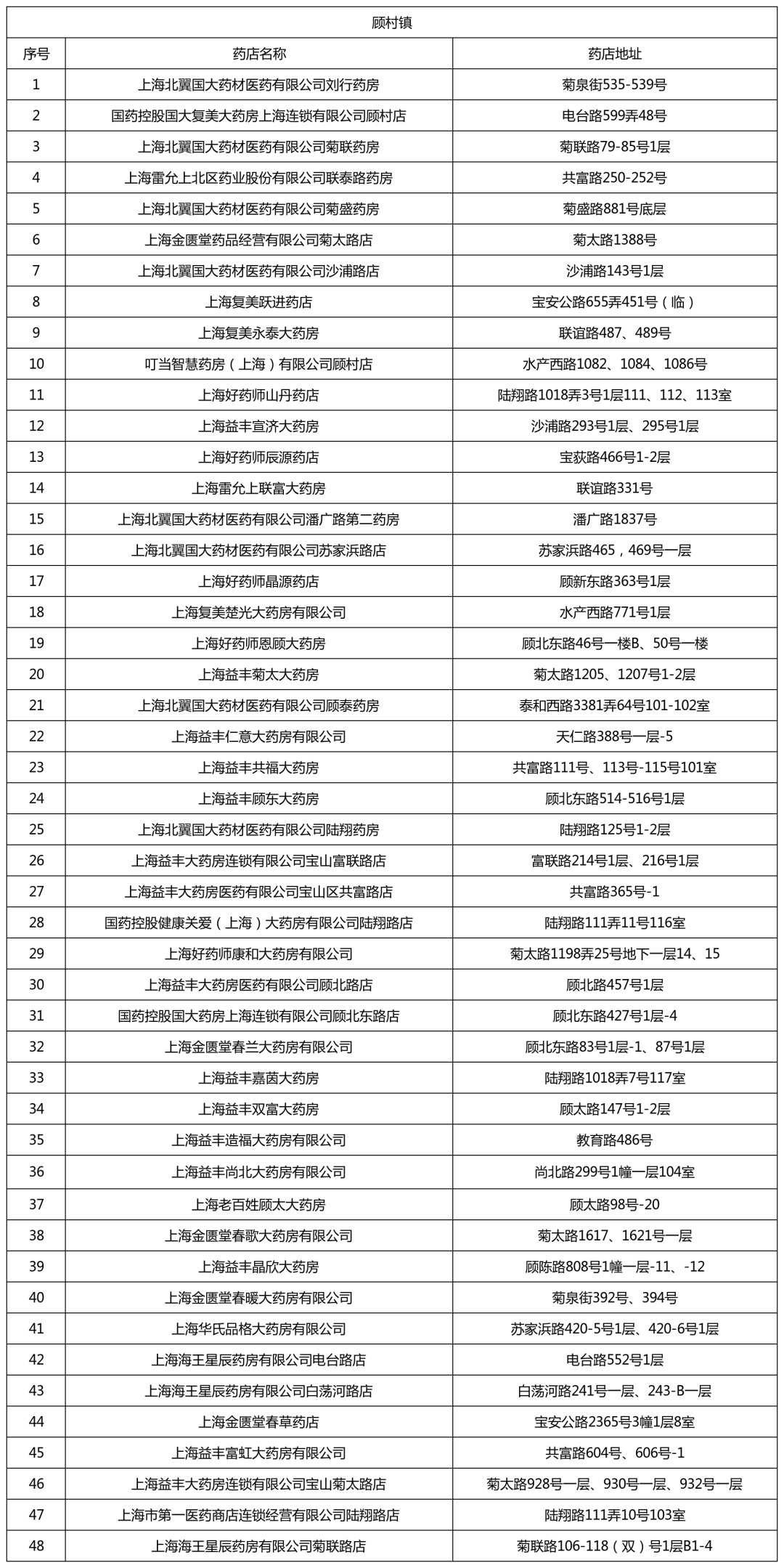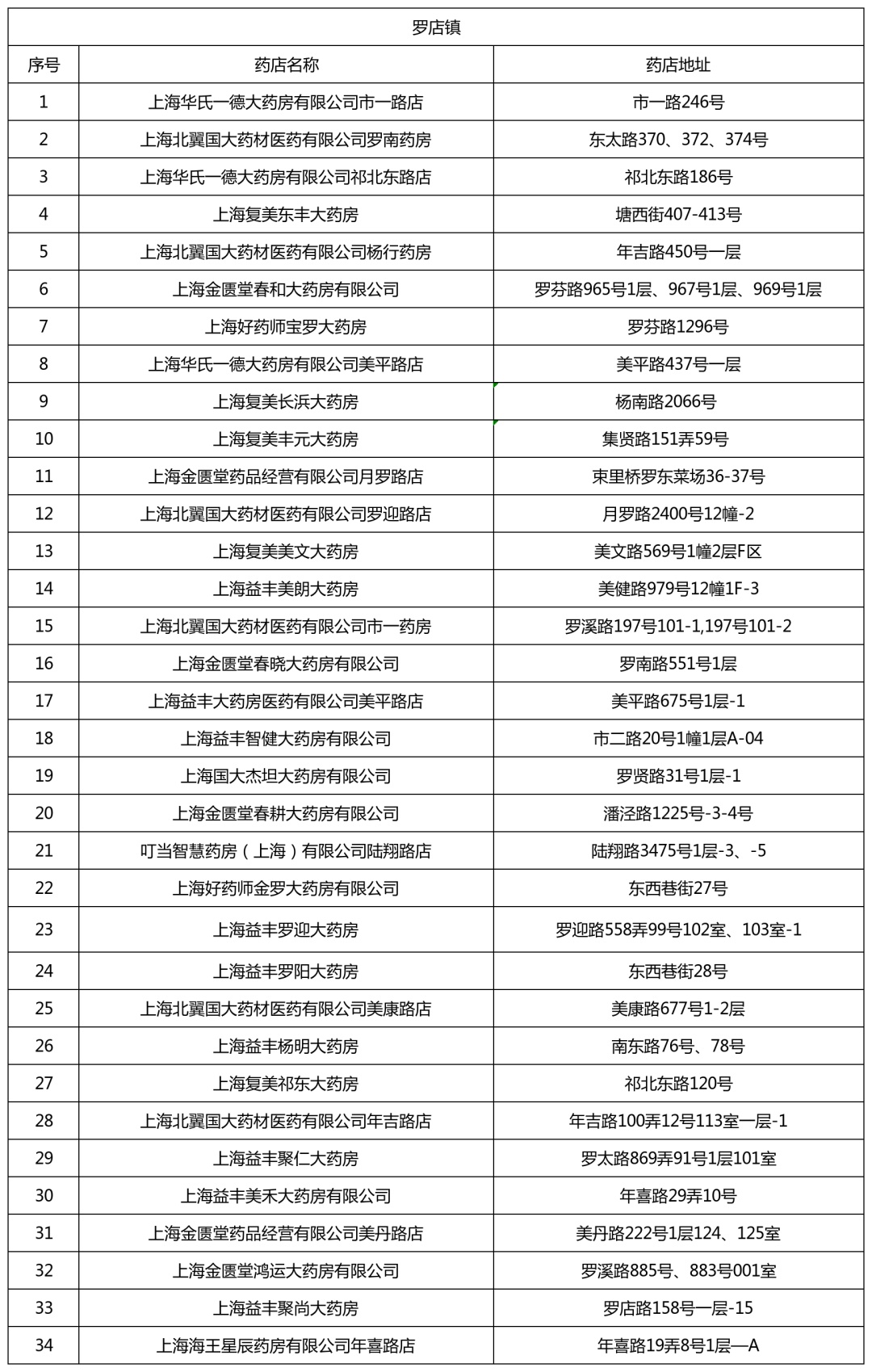 截至2025年12月26日,宝山区域内医保定点药店机构数达292家,以下信息按街镇分布排列: