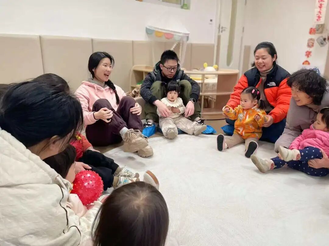 下午,静安区早期教育指导研究中心南园的分领域亲子游戏,涵盖户外大肌肉运动、室内音乐律动与认知探索等,满足不同月龄段婴幼儿发展需求。