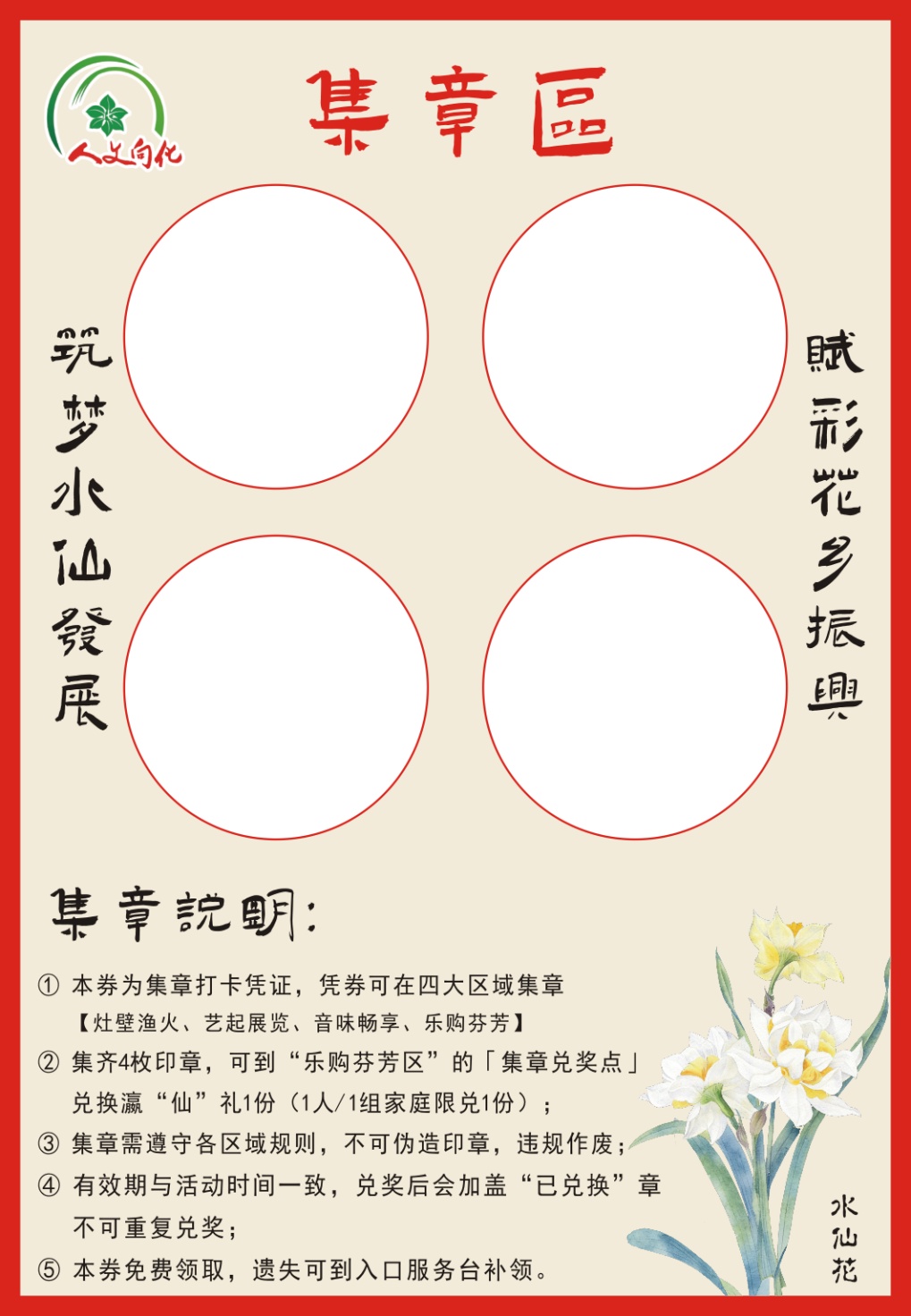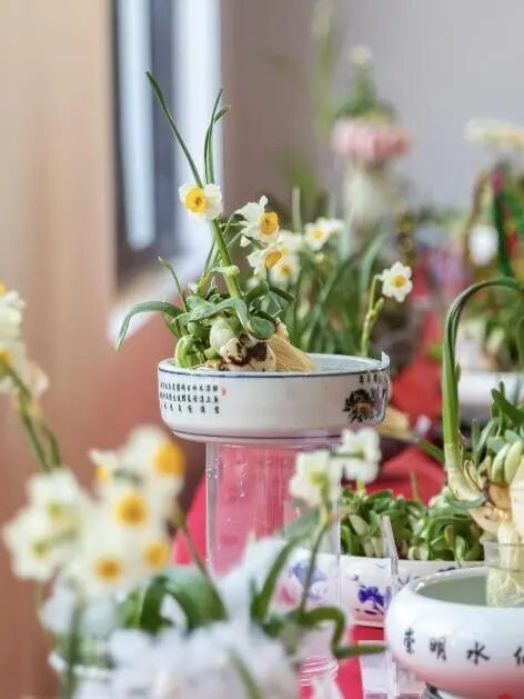 亲手体验水仙雕刻,在专业老师的指导下,从一颗种球开始,感受雕刻艺术的精妙,完成一盆专属于你的“凌波仙子”盆景。还能体验丰富的非遗美学,在团扇上绘制古朴的灶花纹样与清雅水仙;尝试灶花版画拓印,感受传统技艺的乐趣;或用多彩的土布创作一幅充满乡土气息的水仙贴画。