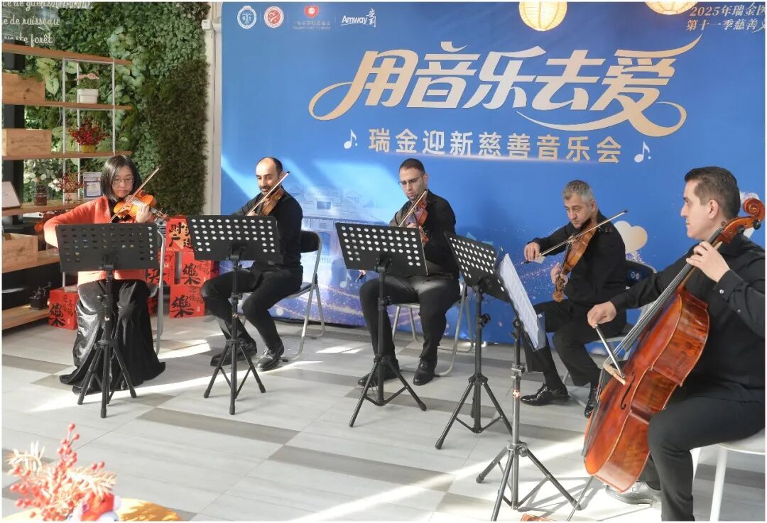 12月29日下午,灵动的旋律在瑞金医院的广慈花园·瑞空间流淌。四位来自亚美尼亚国家交响乐团的音乐家受邀参与由上海市慈善基金会、瑞金医院和安利公司共同主办的“蓝天下的至爱——用音乐去爱”公益活动,与在场的医护人员开展音乐互动,共同演绎了一场跨越国界的音乐盛宴,为奋战在医疗一线的瑞金医护员工送上新年的祝福。上海市慈善基金会副理事长张华、瑞金医院党委书记胡伟国等领导出席音乐会。