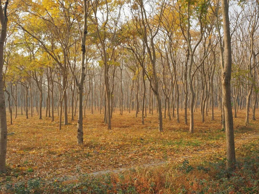像把整罐焦糖阳光揉碎在了枝桠间;