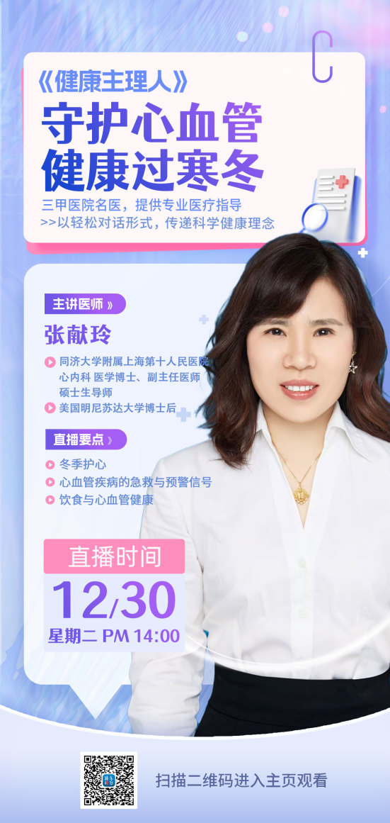 为啥一到冬季心血管就容易闹脾气?除了天气因素,冬季的哪些生活习惯会加重心脏负担?本期我们邀请到的嘉宾是上海市第十人民医院心血管内科副主任医师、医学博士,美国明尼苏达大学博士后张献玲主任,请张医生带大家了解一下“冬季护心”的问题。