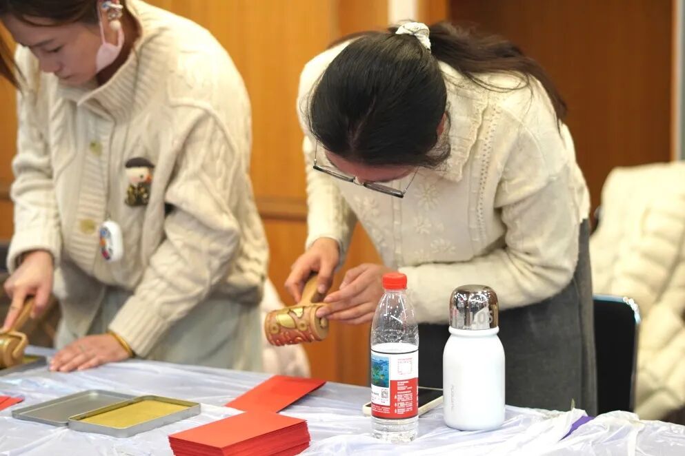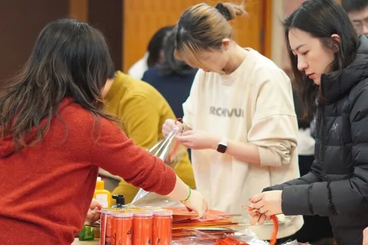 “特色美食区” 让白领们沉浸式感受“舌尖上的新春”:松软的面包、醇香的咖啡、清甜的水果与各式零食风味各异,吸引大家纷纷驻足挑选品尝。“趣味互动区”则是本次市集的“人气高地”,大家踊跃参与到新春抱抱桶DIY、新春红包拓印等特色项目中,动手创作的过程中满是欢声笑语。这些简单有趣的手工游戏,既让大家放松身心,又在协作交流中拉近了彼此之间的距离,增进了情感联结。