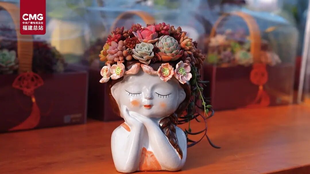 “福”字造型、“福袋”造型、绽放的“中式礼花”等主题盆栽琳琅满目。这些作品将多肉的萌趣与传统年节寓意相结合,满足了消费者特别是年轻群体对个性化和仪式感的追求,咨询和订单络绎不绝。