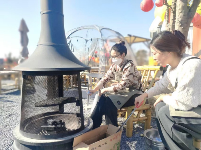 系上围裙,我进行了户外围炉煮茶的体验。这并非简单的生火取暖,而是一套充满仪式感的操作。店员仔细指导:选择空旷,备好灭火器;用液体点燃无烟炭,直到炭块覆上均匀的灰白;过程中用长柄火钳小心照看。当炭火终于稳定地吐出融融暖意,一股混合着炭火气息温暖将我包裹。坐在稻田边,看远处田埂线条舒展,手心被炭火烤热,我突然理解了店员姐姐之前说的——这里的风景是“活”的。季节不再是日历上的标签,而是拂过脸颊的风,是眼前的色彩,是耳边的声音。
