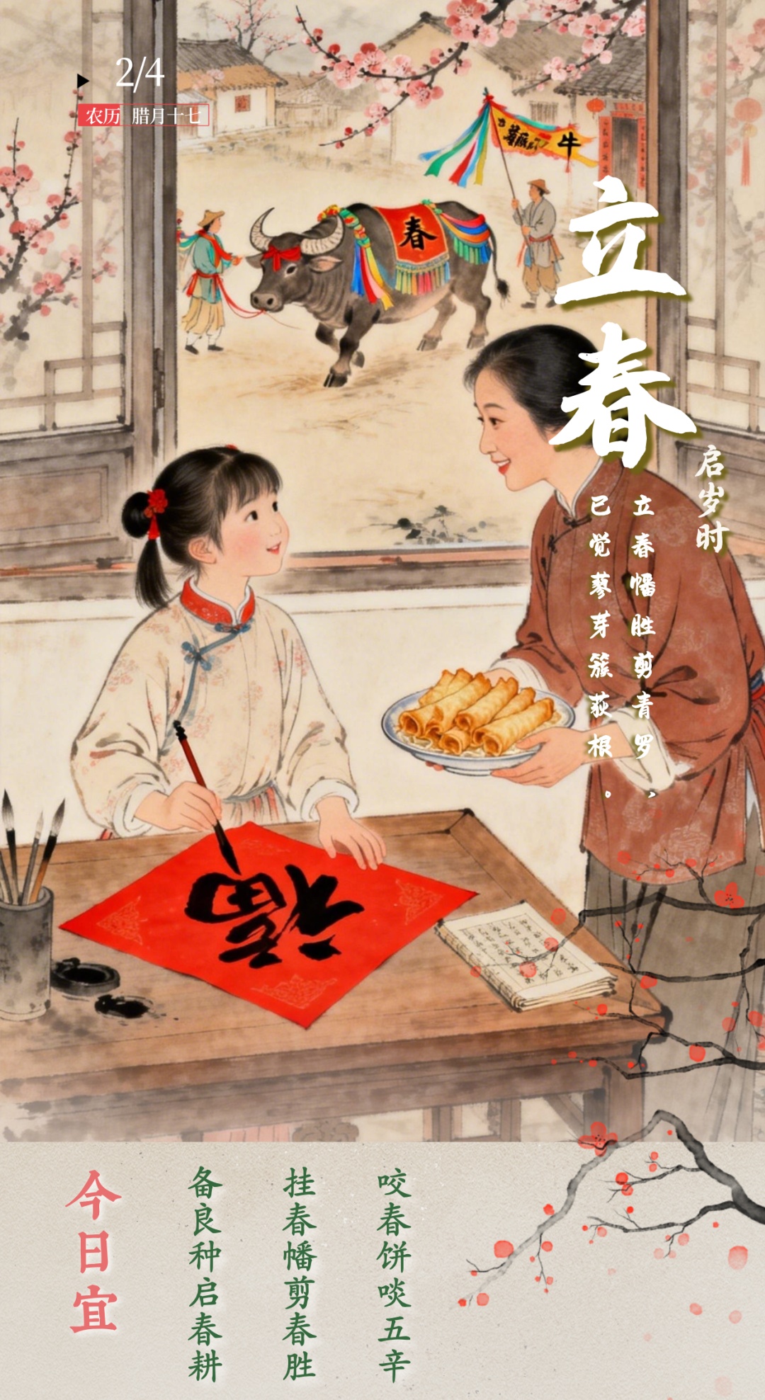 “律回岁晚冰霜少,春到人间草木知。”循着节气脚步,在都市烟火气中感受春的生机,在传统与现代交融中品味春的韵味,带着期许迎接新一年的希望与喜悦。正如上海人常说“立春一到,日子就有了新奔头”,这简单话语里,藏着最朴素的生活智慧与真挚的新春祝福。