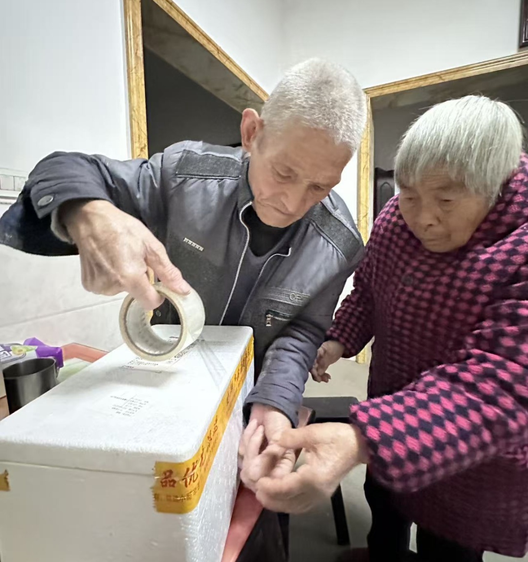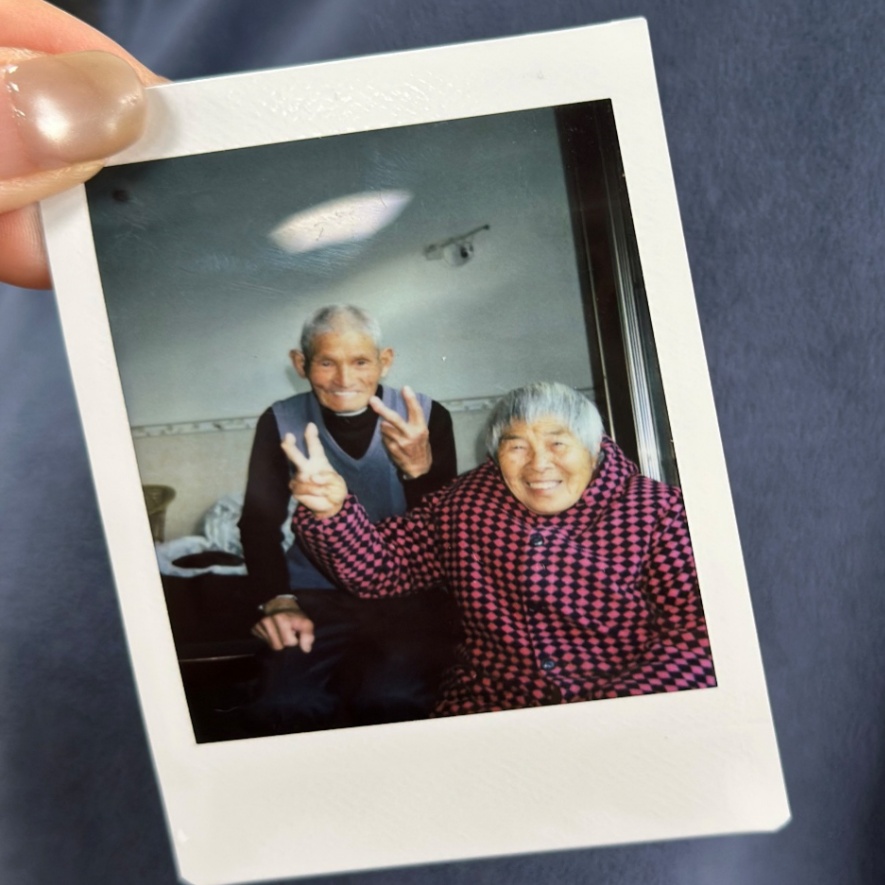 小季特地带了拍立得回家,二老一听说要拍照,立马放下手里的泡沫箱,凑到镜头前。平常不爱拍照的爷爷露出一口大白牙,和奶奶一起比了个耶。小季拿出拍立得说:“随时带在身边,就感觉他们没走远,还在跟前唠叨我。”