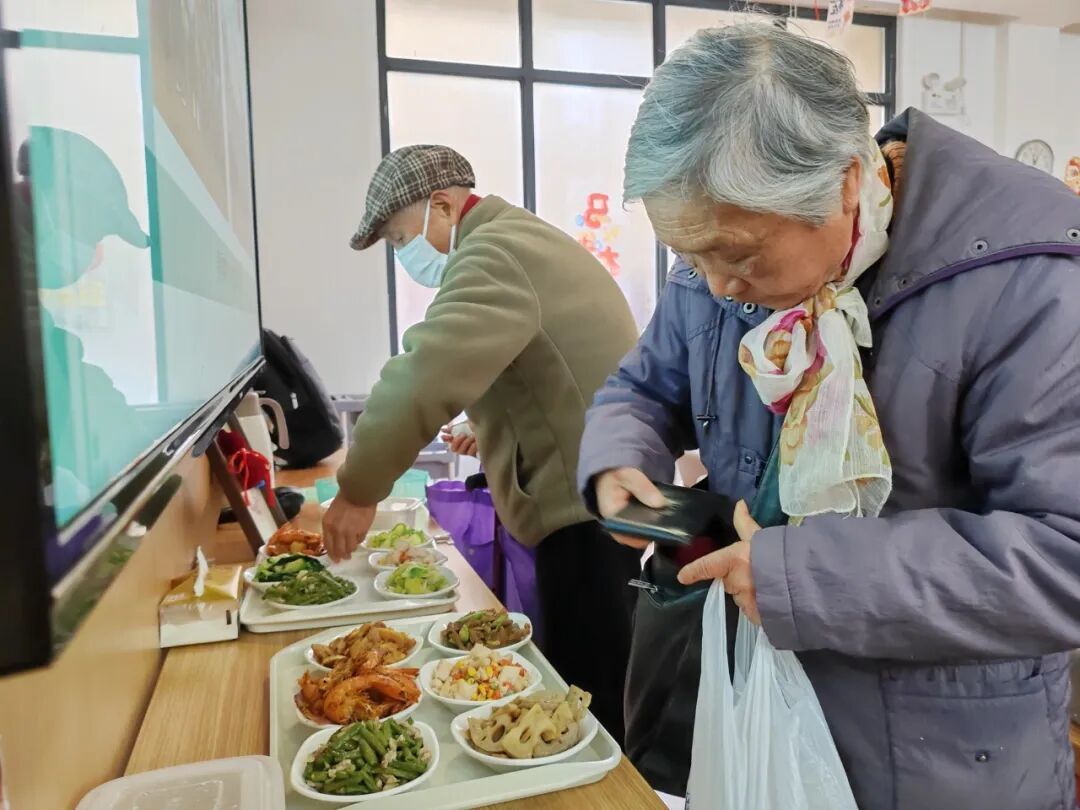 此外,食堂还新增智能结算区,老人选餐完毕后,将餐盘放在指定区域即可自动显示价格,操作便捷省心;使用敬老卡,60周岁—79周岁老人可享9折优惠,80岁及以上老人享8.5折优惠。打餐区旁增设的洗手台和打包区,让打餐流程更规范,动线更合理,细节之处尽显关怀。