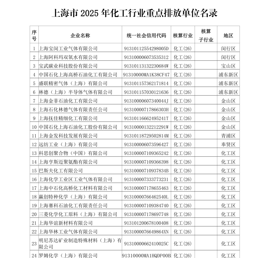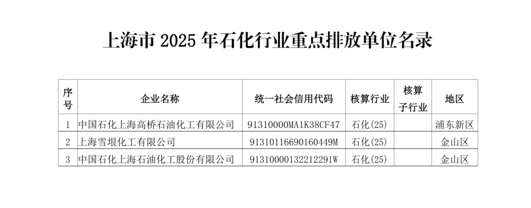 点击阅读原文,查看《上海市生态环境局关于发布纳入全国2025年度温室气体排放报告与核查工作范围的部分重点行业企业名单的通知》(沪环气候〔2026〕14号)