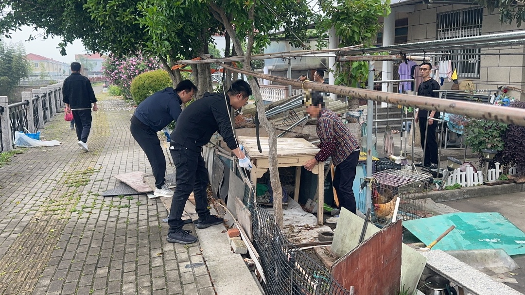 针对社区内部分居民违规饲养家禽导致异味、噪音扰民及卫生安全隐患等问题,金葫芦二居垂姚村综治中心联合相关职能部门成立专项整治小组,通过逐户走访告知、发放整治通知书等方式,向居民讲解违规饲养的危害及相关规定,引导居民自行处理家禽。对于逾期未整改的,依法依规进行集中清理,累计处理违规饲养家禽63处。在高棚与堆物整治方面,工作人员对社区内的高棚、乱堆乱放现象进行全面排查登记,建立整治台账,逐户与居民沟通,讲解安全隐患等问题,争取居民理解与配合。在拆除高棚过程中,工作人员全程做好秩序维护与物品搬运协助工作,确保拆除工作安全有序。