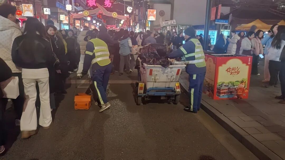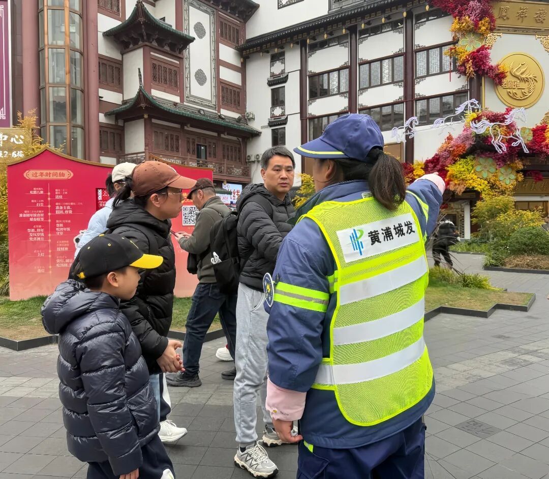 在豫园,这样的暖心服务并非个例。负责景区保洁的欣晨公司,始终将服务温度融入市容保障,让环卫工人成为景区服务的延伸力量。三牌楼路小压站的环卫工作人员,为带着老人、孩子的游客提供爱心座椅、热水、充电等便民服务,在寒风中为游客打造歇脚的“温暖港湾”;景区里的环卫工人还会主动提醒游客文明游园,帮忙照看随身物品,点滴举动让豫园的节日氛围更添温情。