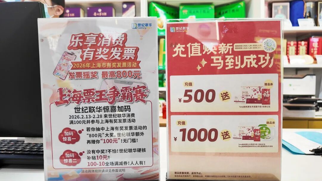 “票王争霸”有奖发票活动成为春节期间世纪联华最大的流量引擎。2月13日至2月21日活动期间,该活动累计带动近25万人到店参与,门店整体领券参与率近30%,整体客流较活动前大幅攀升。“从春节假期一直到今天,活动还在不断延续。”世纪联华中环店店长章纯明介绍,通过积分抽奖及百联通会员专属福利,门店推出涵盖粮油、乳品等过节刚需的800余款五折起特价商品,并辅以金条、足金转运珠等惊喜抽奖,以实惠与好运回馈消费者。
