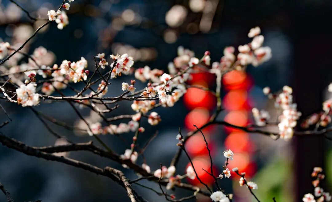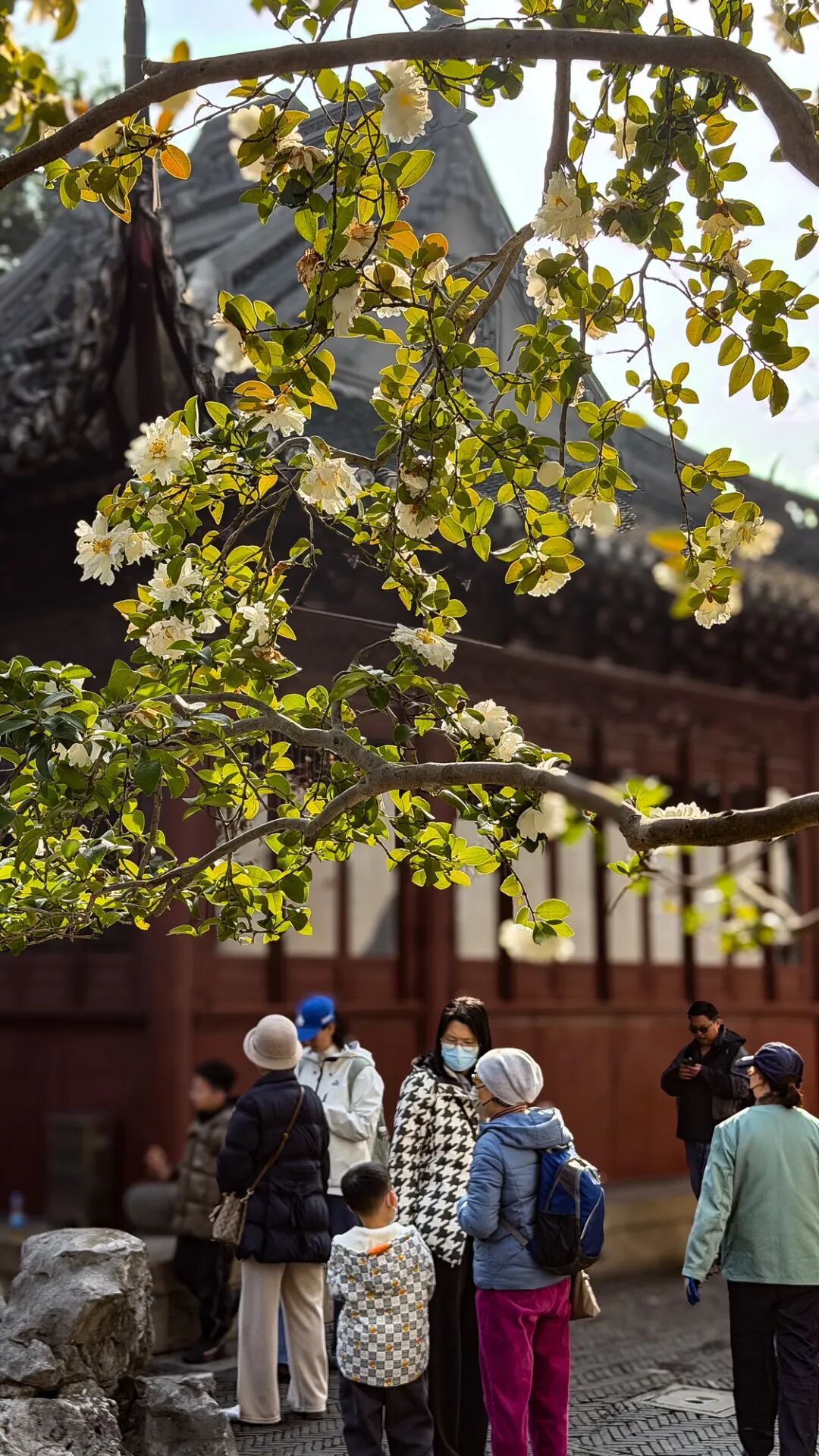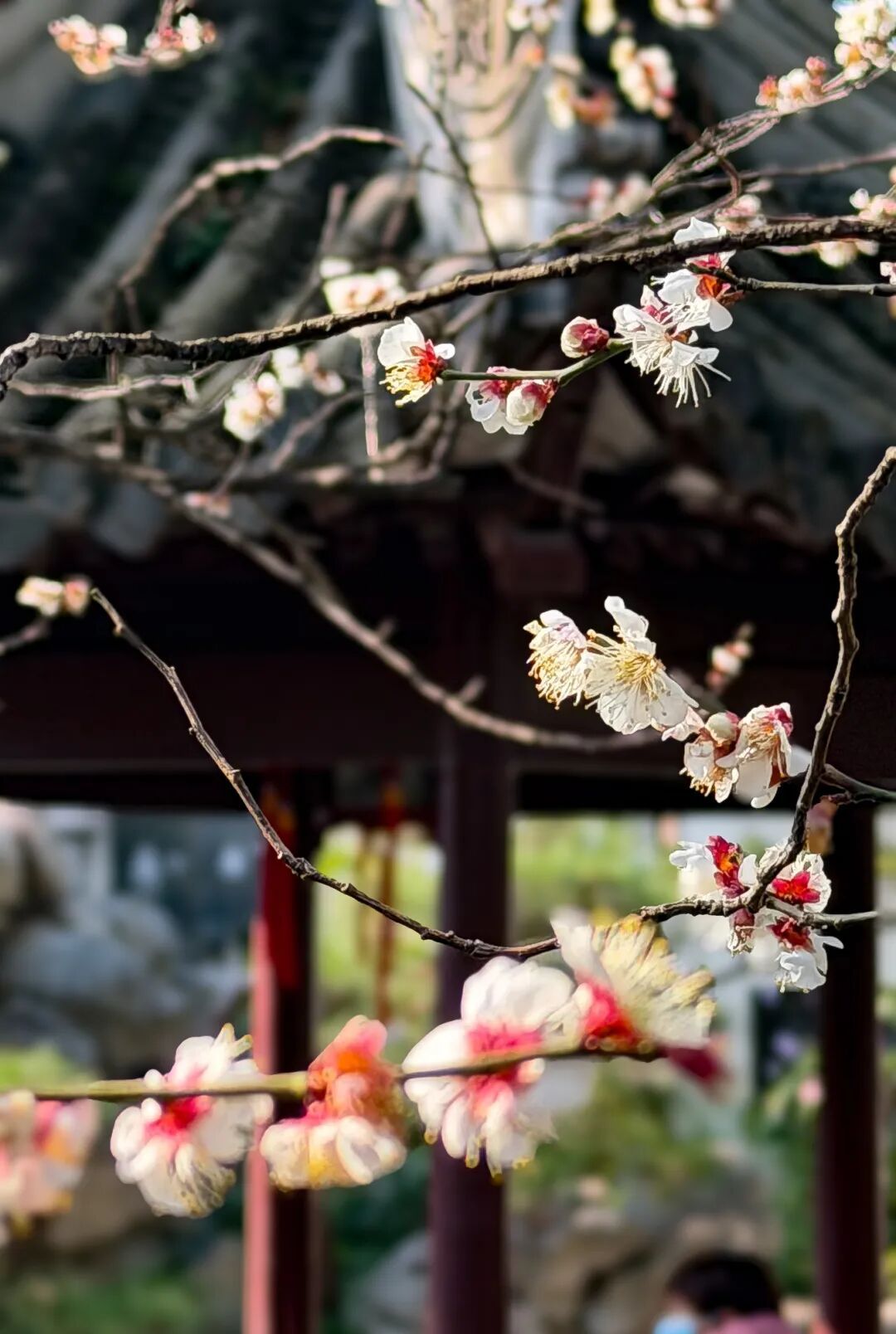 古戏台前,素心蜡梅暗香浮动;玉玲珑畔,绿萼梅枝疏影横斜。疏影映衬粉墙黛瓦,曲水倒映梅梢春意,一幅名为“早春”的江南画卷便在此徐徐展开。