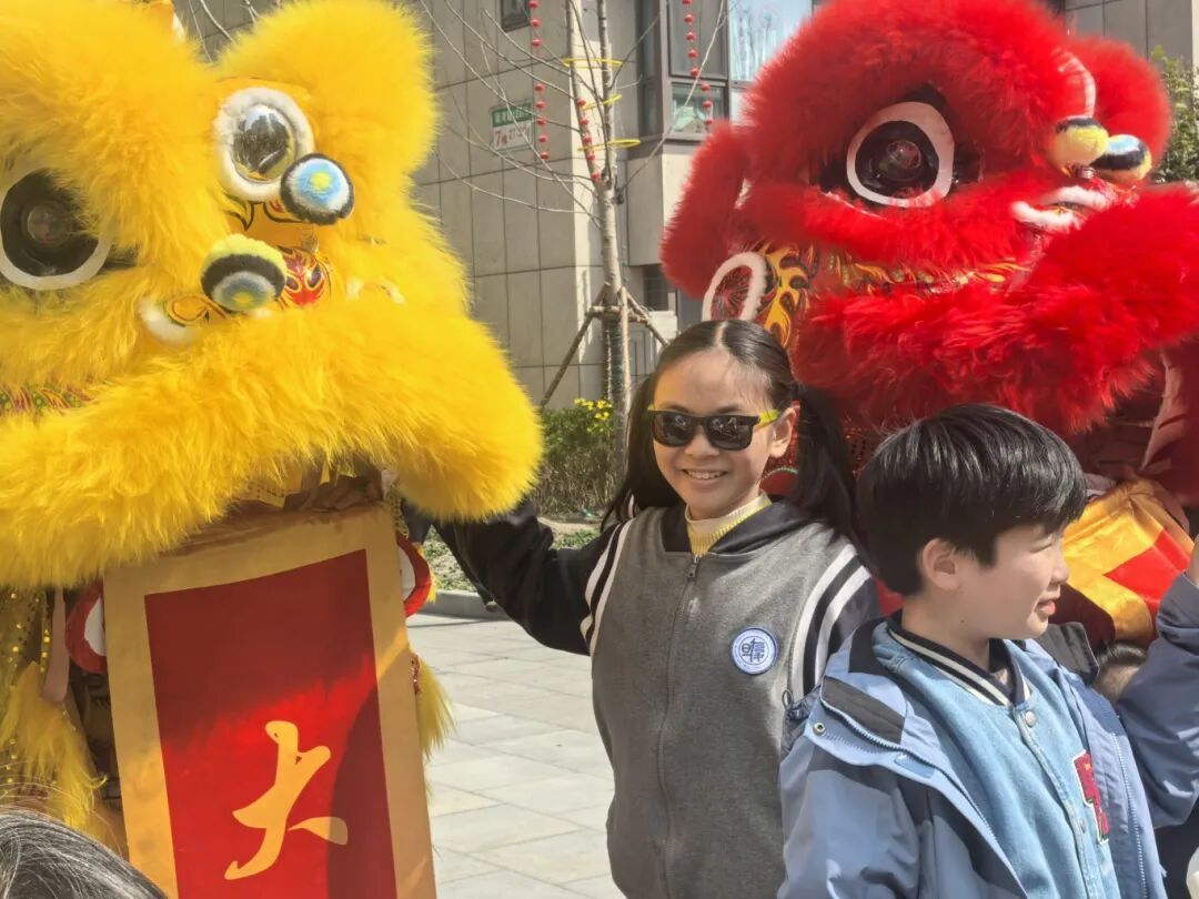队伍中,几位“社区小先生”格外引人注目。他们手持竹竿,协同配合,紧握龙身扶手,随着鼓点轻轻晃动,动作虽显稚嫩,却认真有力。孩子们与专业演员并肩而行,笑声与锣鼓声交织,将氛围推向高潮。居民们纷纷举起手机、相机,定格下龙腾狮跃的瞬间,也记录下孩子们朝气蓬勃的身影。