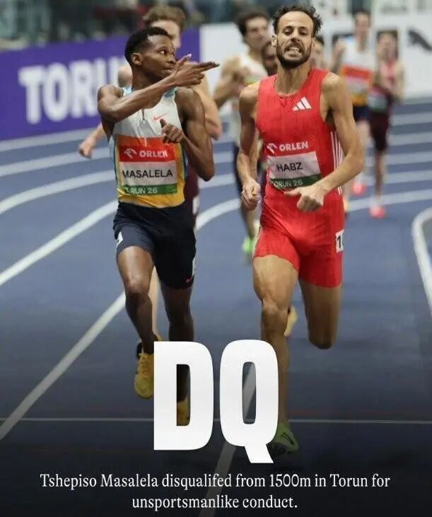 北京时间2月23日,博茨瓦纳中长跑运动员特希皮索-马萨莱拉,在波兰举行的一场室内赛中赢得1500米冠军后不久,即被取消资格,原因是他做出了一个不当举动——