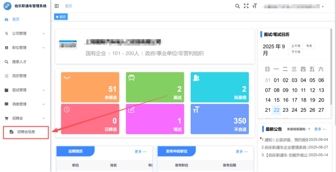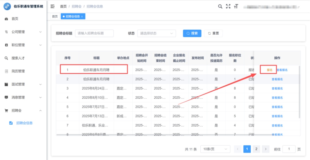 点击左侧招聘会-招聘会信息