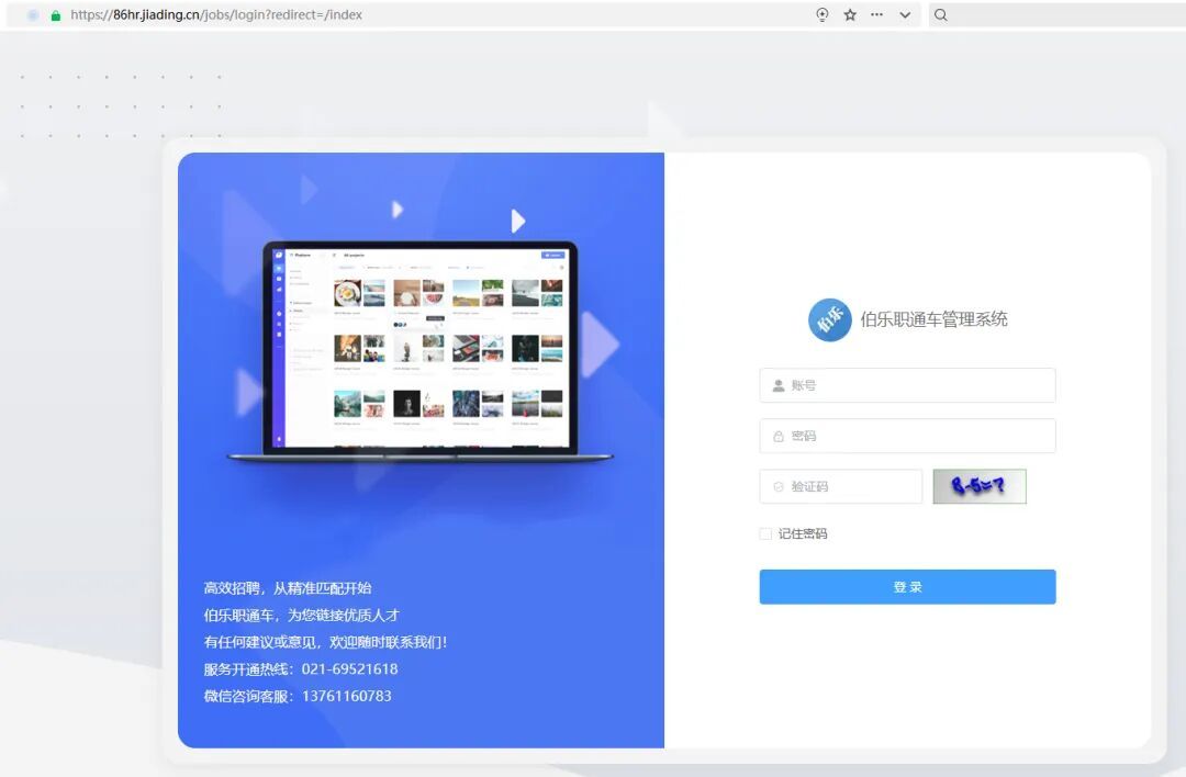 登入“伯乐职通车”企业端后台