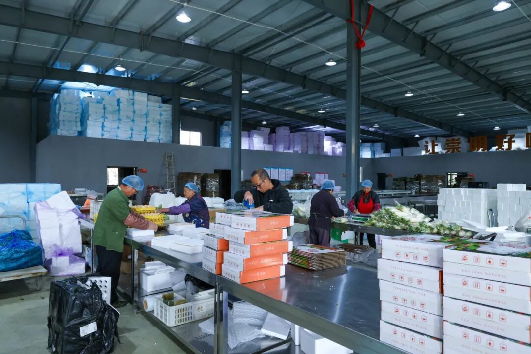其次,农民增收开辟了“双重路径”。分拣中心本身成为就业“蓄水池”,旺季时能提供200—300个灵活岗位。更重要的是,它通过“以销定产”的订单模式,反向链接近百家种植户。分拣中心每日大约能处理20多个品类、电商订单1500单,像一根稳定的管道,将市场需求直接转化为田间订单。最近天气转冷,市场收购价上扬,鸡毛菜田头价涨至每斤3元,这份市场红利通过分拣中心的高效渠道,迅速而直接地反馈给了农户。