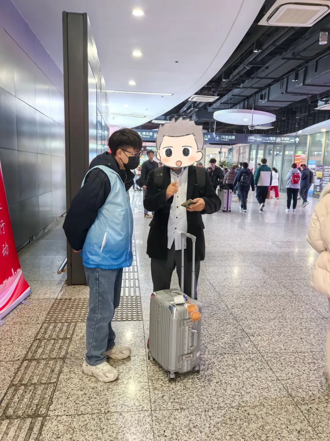 抵达车站后,志愿者们首先通过岗前培训,熟悉了服务规范、问题应答与应急处置等。随后,他们换上了统一的蓝马甲,前往各点位开启了志愿服务。