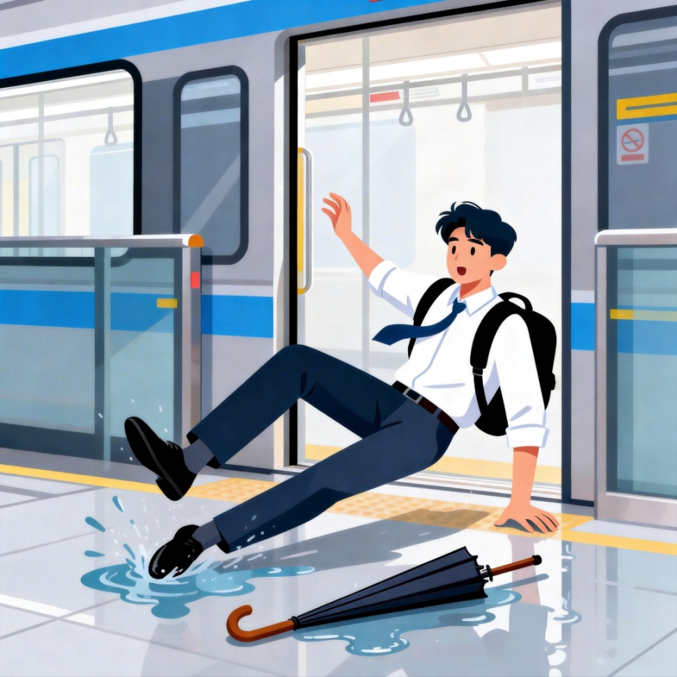 《工伤保险条例》第十四条第六款的规定,针对的是上下班途中受到交通事故伤害的情形,这里的事故包括基于职工搭乘不同种类交通工具引起的机动车道路交通事故、非机动车道路交通事故、城市轨道交通事故、客运轮渡事故、火车事故等。你步行至地铁通道,因地面湿滑摔倒受伤,并非因城市轨道交通事故而受伤,不属于《工伤保险条例》第十四条第六款规定的情形,因此不应认定为工伤。