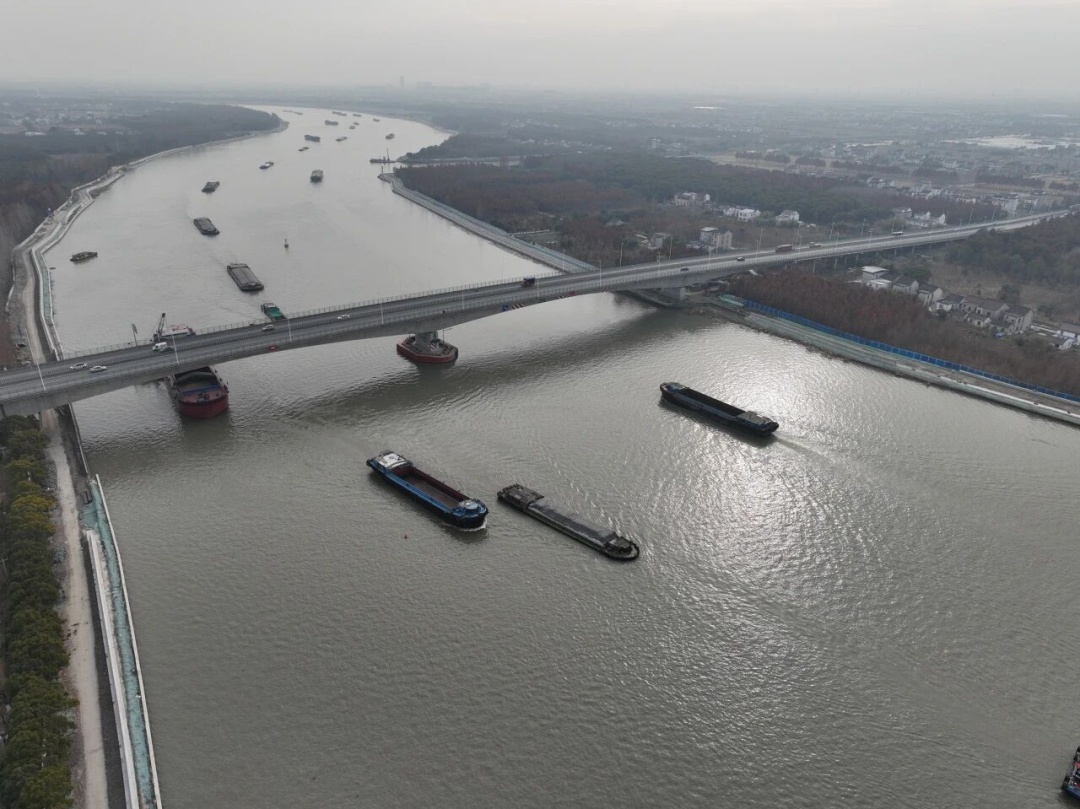 推进长三角交通高质量一体化发展。轨道交通开工建设嘉闵线北延伸,推进沪渝蓉高铁、上海示范区线等市域铁路项目。公路开工建设G50高速扩容改造、G318水乡客厅段改建工程。航道网持续推进苏申内港线、油墩港等航道整治工程。此外,纵深推进长江经济带多式联运中心建设。