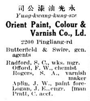 在平凉路2200号,曾经有一家著名的涂料制造商,叫永光油漆公司(Orient Paint,Colour and Varnish Co.)。