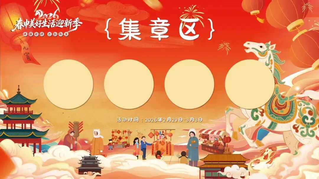 每天17:00—19:00,“趣猜灯谜”活动准时开场,精品好礼等你来“猜中”。现场还有“喜乐留影”打卡点,记录团圆笑颜,分享节日喜悦。此外,在互动摊位还可领取实体打卡手册,在指定摊位完成互动任务,即可盖章打卡,集齐印章就可抽取更多好礼!