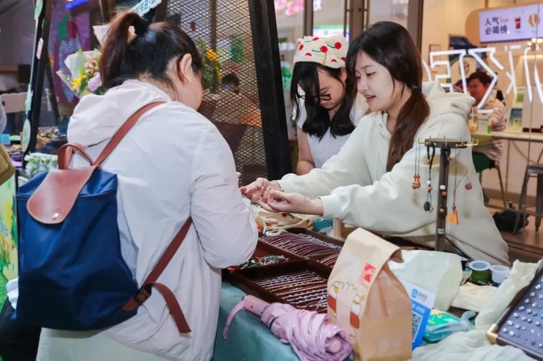 在万源坊的户外市集区,老字号与新品牌同场亮相:乔家栅的糕点、绿杨邨的汤圆、红双喜的体育用品、南通非遗的文创、流光记的国风手作……从传统年货到潮玩文创,从美丽鲜花绿植到精致甜品咖啡,逛一圈就能把年味全部带回家。