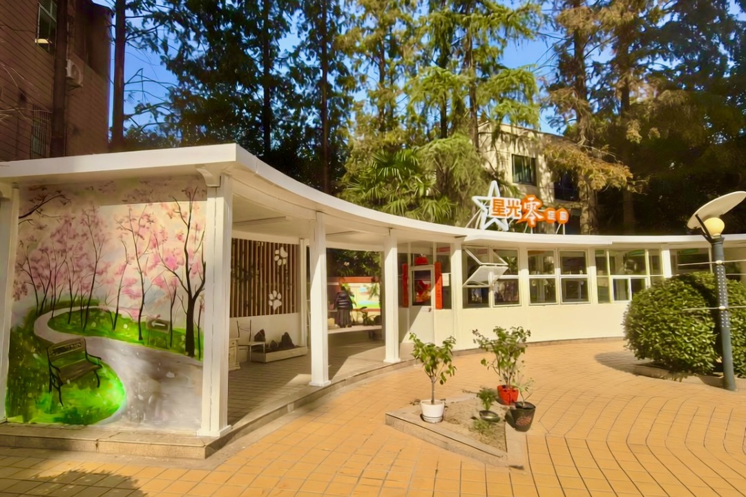 面对活动空间紧张、原有长廊损毁的困境,五星公寓小区积极联动各方力量,对长廊开展升级改造与功能完善工作。上海市文明单位上海建工五建集团有限公司牵头重建长廊主体结构,以专业之力为长廊筑牢根基;全国文明单位华东电力设计院有限公司捐赠并安装柜式空调,让长廊四季暖意融融;在区政协委员的助力下,专业团队设计彩绘、策划亲子互动活动,为空间注入满满文化活力与亲子温情。 中国联通上海市西区分公司为长廊提供网络以及电视,江苏银行上海普陀支行添置温馨实用的书架与图书角,切实满足居民们的文化娱乐需求。小区居民也主动参与其中,自发捐赠藏书、花卉、玩具等,让长廊处处浸润着烟火气息与邻里温情。 星光点亮零距离文明