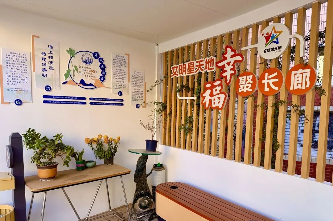 近日,曹杨金岭园五星公寓小区内,一处曾因设施陈旧、空间闲置而渐渐被遗忘的角落,经过 “文明星天地”项目的精心打造,摇身变成“家门口”的“幸福长廊” 。如今,它不仅是居民休闲娱乐的温馨场所,更成为传播文明理念、凝聚社区合力的重要载体。 多元共建筑文明根基