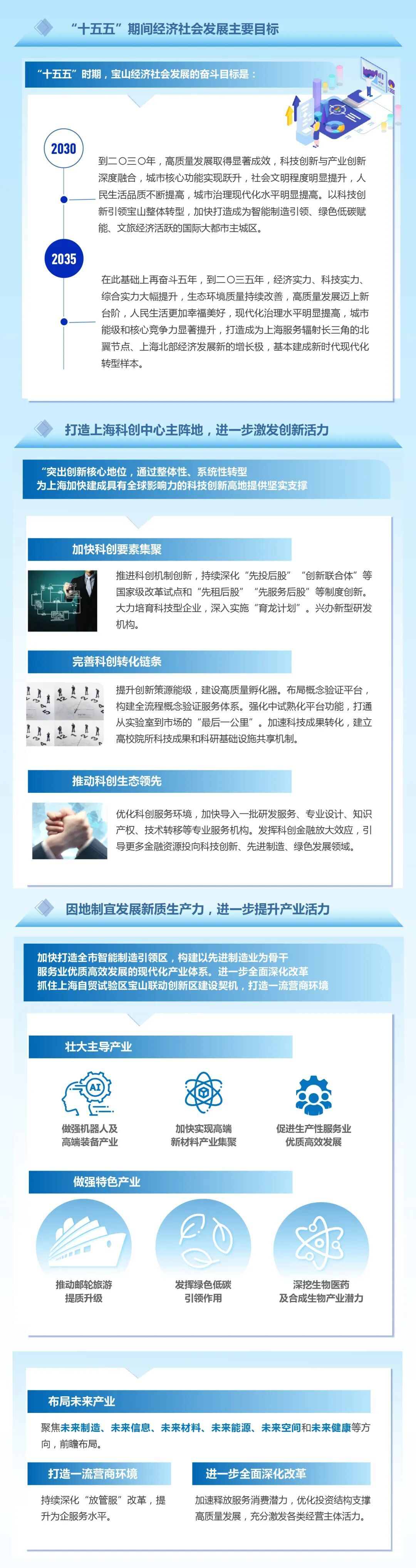 本期介绍的是宝山区。“十五五”时期是宝山全面实施“一地三区”发展战略,加快构建“一核两翼”发展格局,奋力打造新时代现代化转型样本的关键时期,具有承前启后的重要地位。宝山绘制了怎样的发展蓝图?快来了解一下→