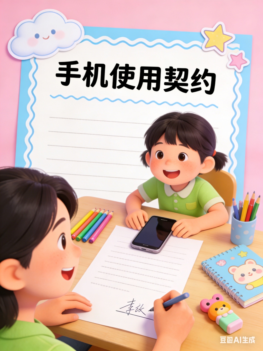 针对假期里高发的“电子产品亲子冲突”,建议用“契约精神”代替强硬禁令。比如,可以和孩子沟通如何平衡学习和休息的想法,让他们自己参与制定的规则,他们的遵从度、意愿往往会高很多。其次就是要做家庭契约,制定的条款要非常清晰,而且要具体。