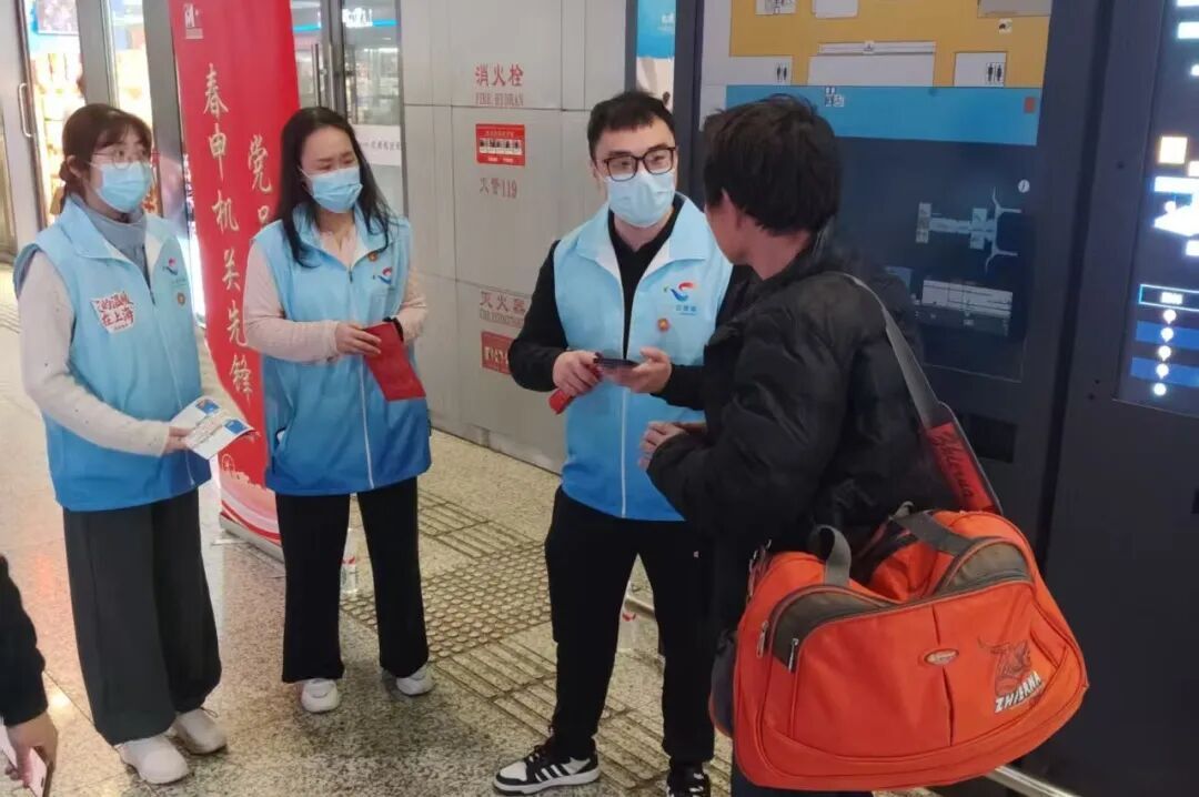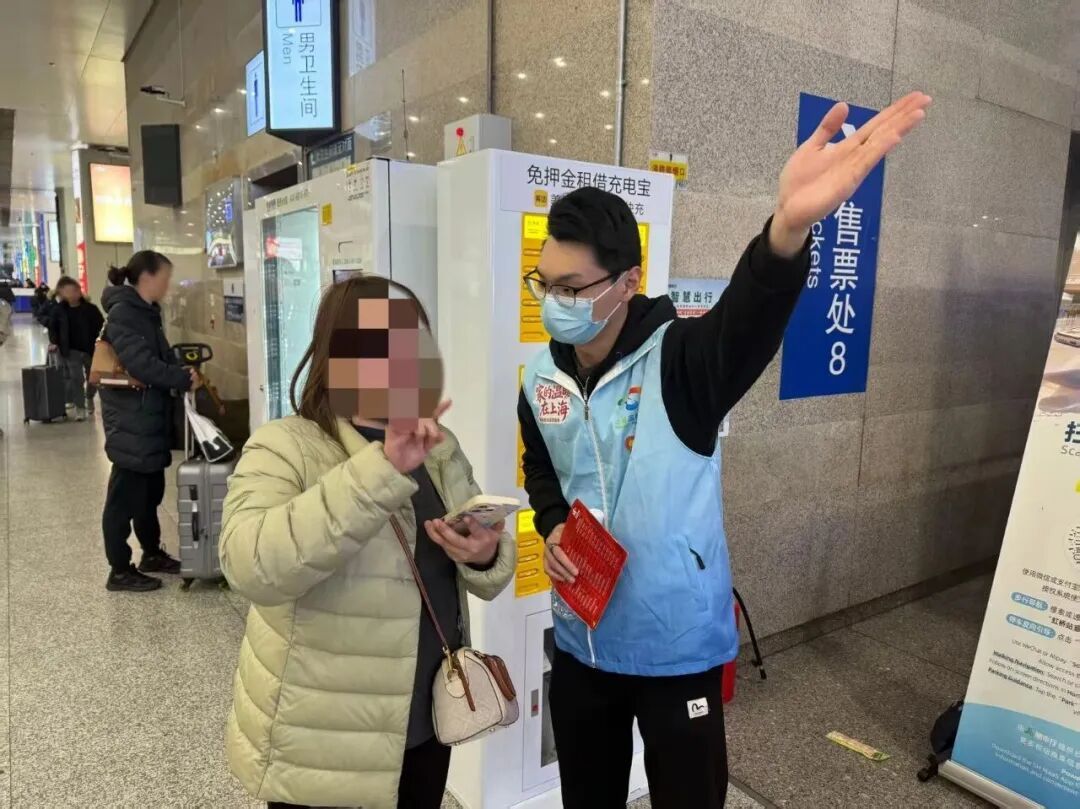 2月21日年初五下午,正值春运返程高峰,虹桥枢纽内人潮涌动。为做好春运期间虹桥枢纽的交通保障工作,来自闵房集团的18名志愿者与8名夜间增派志愿者身着蓝马甲,在当日下午4:00准时出现在虹桥枢纽各个点位,直至凌晨3点。他们用一句句清晰的指引、一次次暖心的陪伴,为南来北往的旅客点亮返程的路。