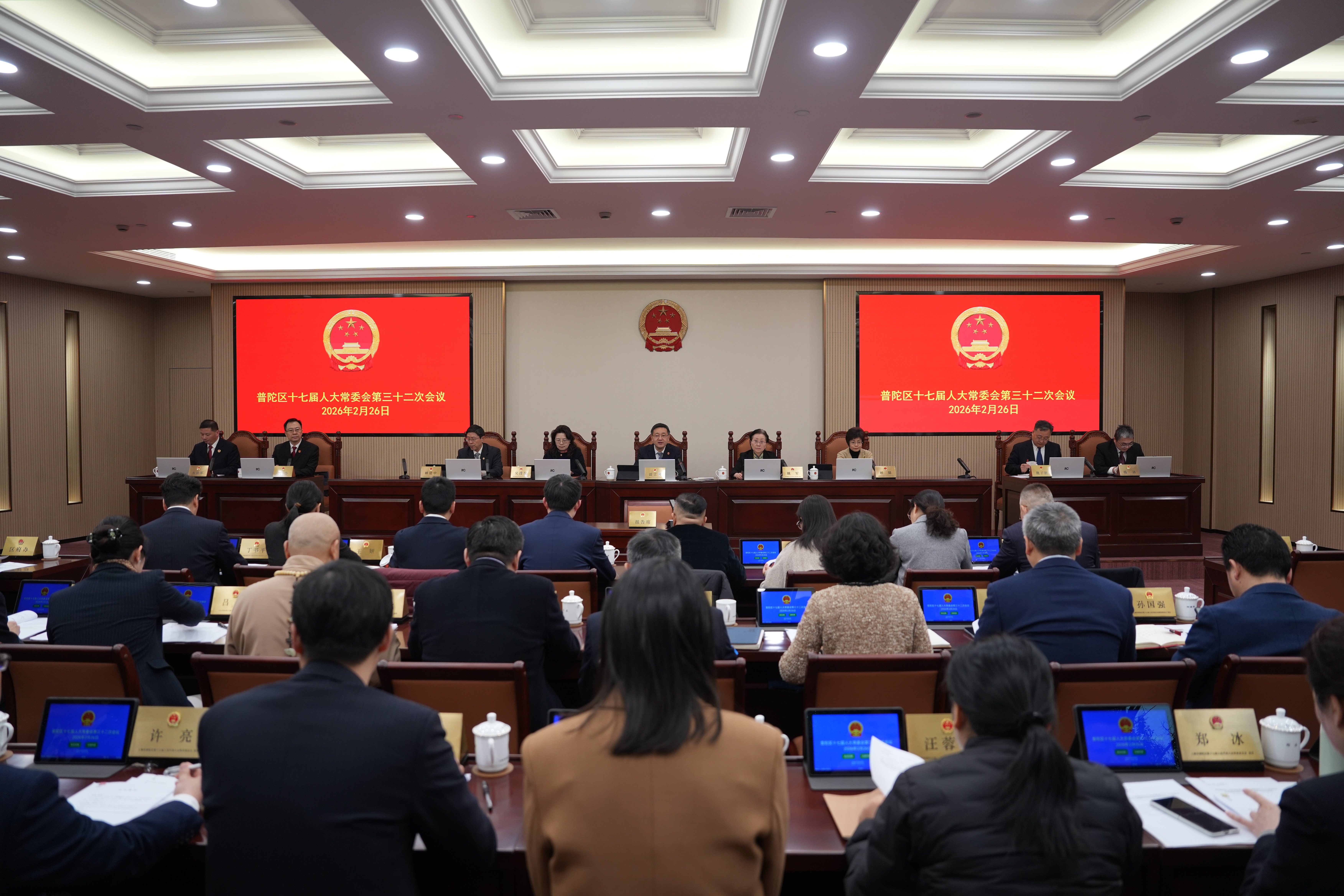 2026年2月26日上午,普陀区十七届人大常委会召开第三十二次会议。区人大常委会主任谈上伟主持会议。