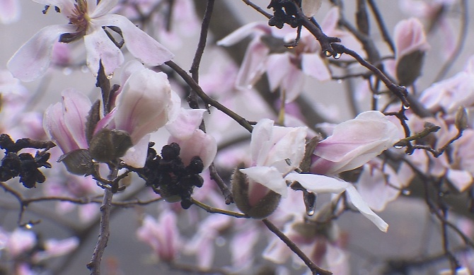 上午,天空阴沉,细雨绵绵,好在气温稳定,体感不冷。金山好人公园里,玉兰花已悄然绽放,枝头缀满了晶莹的雨水,往日热闹的公园也冷清不少,只有少许市民在园内散步、锻炼。
