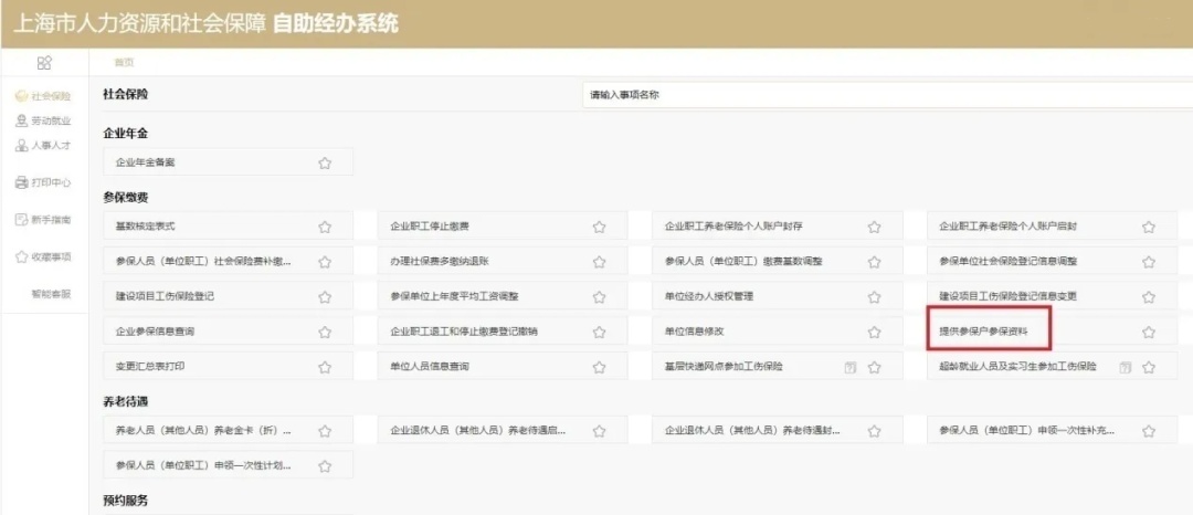 在右侧的“参保缴费”栏目下方,找到“提供参保户参保资料”事项;