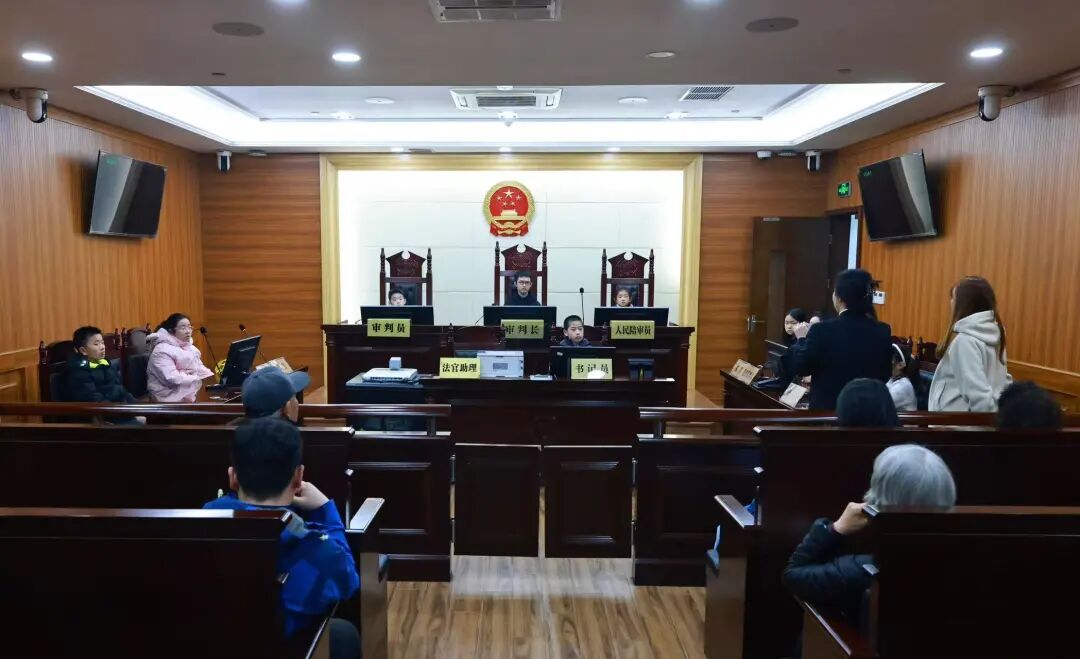 在法院工作人员引导下,参与者们首先参观了现代化、便民高效的诉讼服务中心。随后来到特色网络法庭,大家亲身体验了全流程在线审理模式,对“指尖上的诉讼”及其背后的信息安全知识有了直观认识。在庄严肃穆的传统法庭,一场模拟法庭活动将现场气氛推向高潮。孩子们踊跃扮演审判长、书记员、原告、被告等不同角色,在真实的法庭环境中,亲身体验司法程序的严谨与法律的威严。