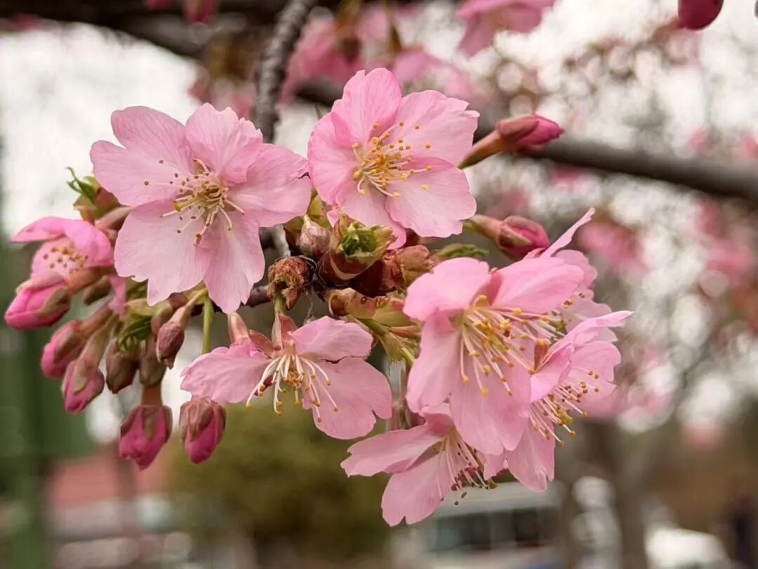 “今年春节期间气温偏高,加上光照充足,早樱比往年提早5—7天开放。目前,河津樱、钟花樱和椿寒樱已基本进入最佳观赏期。后续气温有所下降,大渔樱预计一周至十天内陆续进入观赏期。”顾村公园绿化管理负责人介绍。