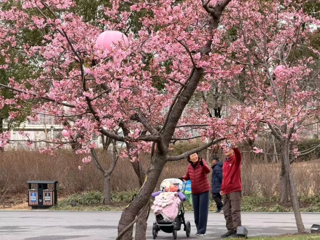 而在公园3号门入口处,盛开的河津樱更是成为意外之喜,让入园的市民连连赞叹。“一走到3号门就看到樱花开了,特别惊喜,没想到开得这么早,感觉赶上了第一波樱花。”赵女士说。