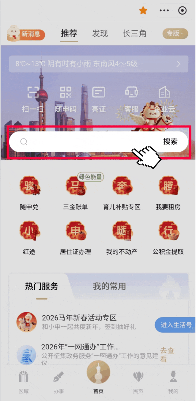 打开“随申办市民云”(APP/微信小程序/支付宝小程序),首页搜索“教育缴费”,或下滑至“精选主题”,找到“教育缴费”,点击进入教育缴费专区。