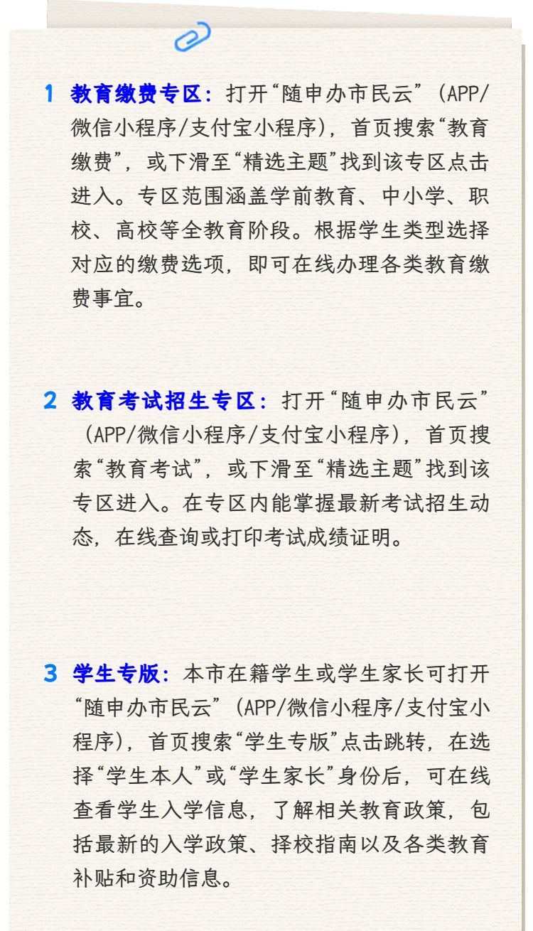 家长可通过教育缴费专区,了解并办理各类教育缴费事宜。