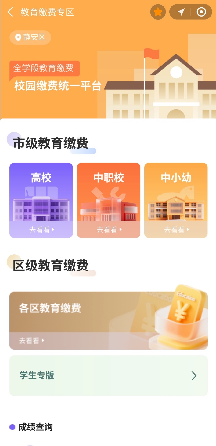 专区涵盖学前教育、中小学、职校、高校等教育阶段,根据学生类型选择对应的缴费选项,即可进行在线缴费。